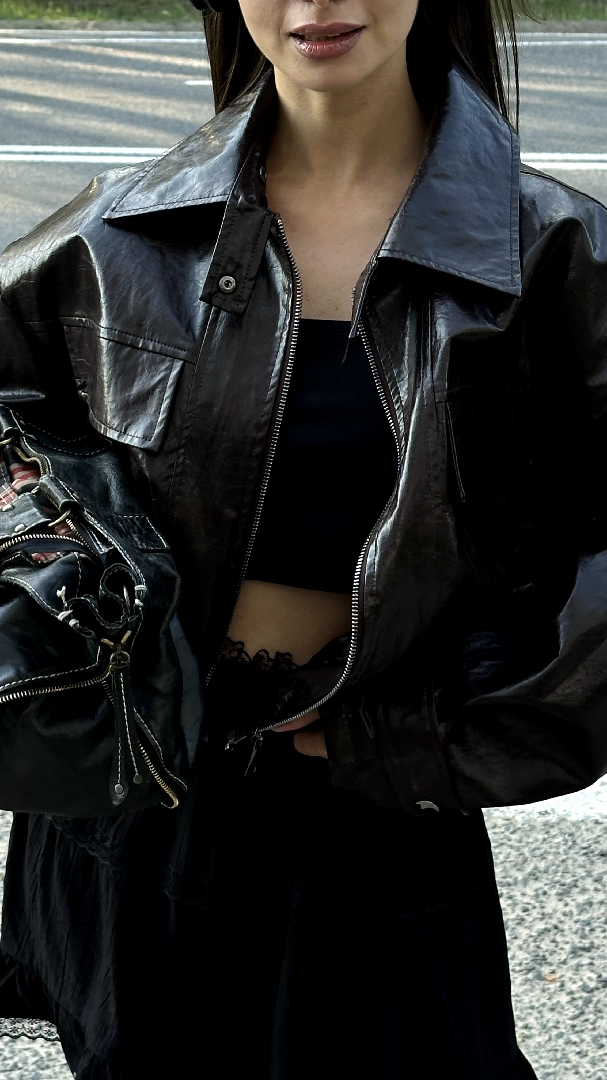 Модная укороченная куртка из плотной экокожи — must-have для тех, кто ценит уверенный и дерзкий стиль. Прямая посадка, широкие рукава и подчёркнутая линия плеч придают образу силуэт 90-х. Куртка оснащена накладными карманами и классическим воротником.