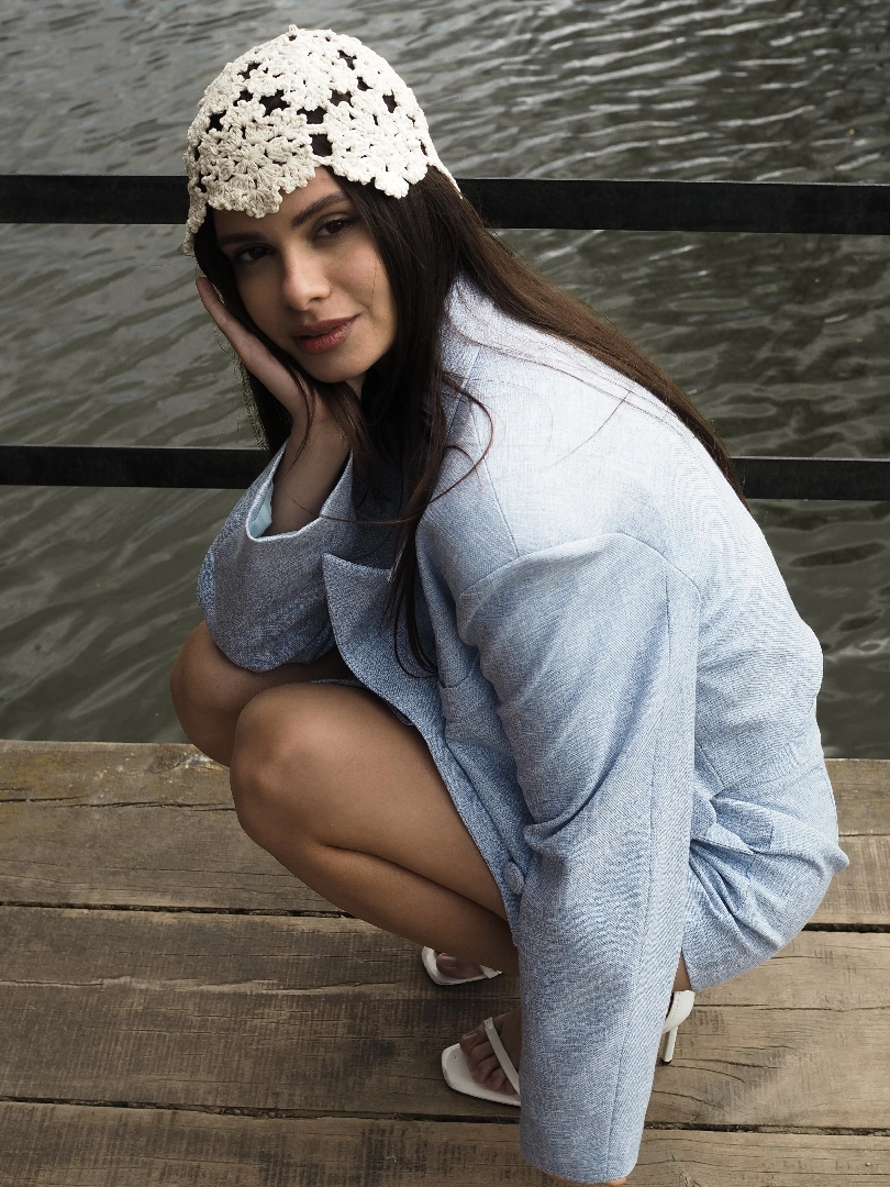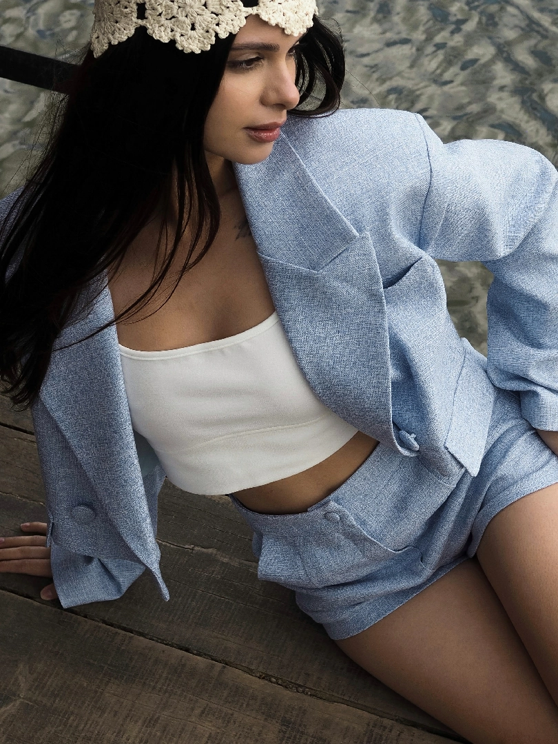 Стильный женский костюм в небесно-голубом цвете — идеальный выбор для тёплого сезона. Верх — пиджак прямого кроя с классическими лацканами, который можно носить как на работу, так и на прогулку. Низ — костюмные шорты средней длины с удобной посадкой. Лёгкая и приятная к телу ткань обеспечивает комфорт в течение всего дня. Сочетается как с обувью на каблуке, так и с кедами — универсальное решение для любого образа.